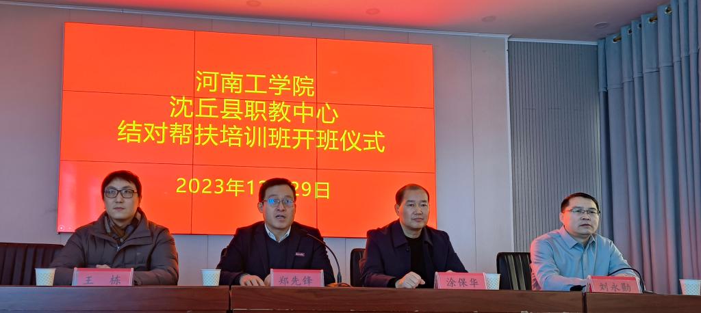 沈丘县职业教育中心校长涂保华主持了开班仪式并致欢迎辞。他对河南工学院专家教师一行的到来表示热烈欢迎,对各位专家教师冒着严寒远赴沈丘传经送宝表示深深感谢,要求各位教职工要珍惜机会,认真学习,在以后的教学工作中做好落实和应用。