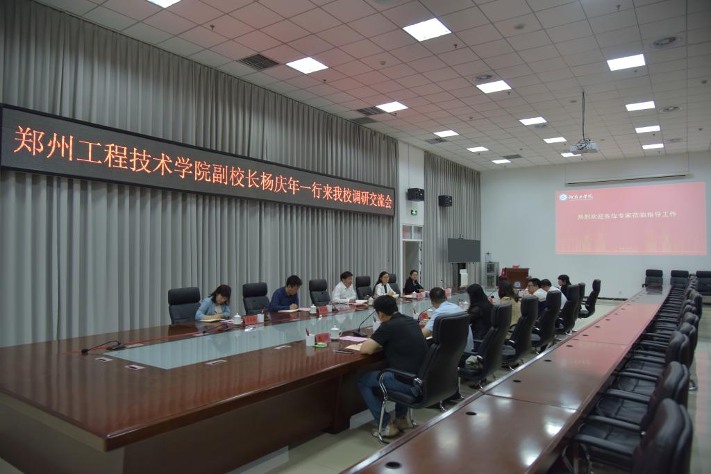 5月7日,郑州工程技术学院副校长杨庆年带领教务处、评估督导处一行5人来我校调研,交流会在办公楼第五会议室举行,副校长刘莉莉,教务处、教学质量监控与评估中心中层干部参加了会议。会议由教务处负责人郭祖华主持。