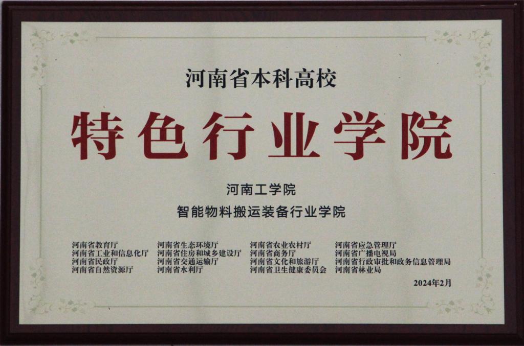 会议期间,我校“智能物料搬运装备行业学院”受牌河南省特色行业学院,“智慧电气现代产业学院”受牌河南省重点现代产业学院,车辆与交通工程学院受牌河南省本科高校2023年度产教融合示范学院。