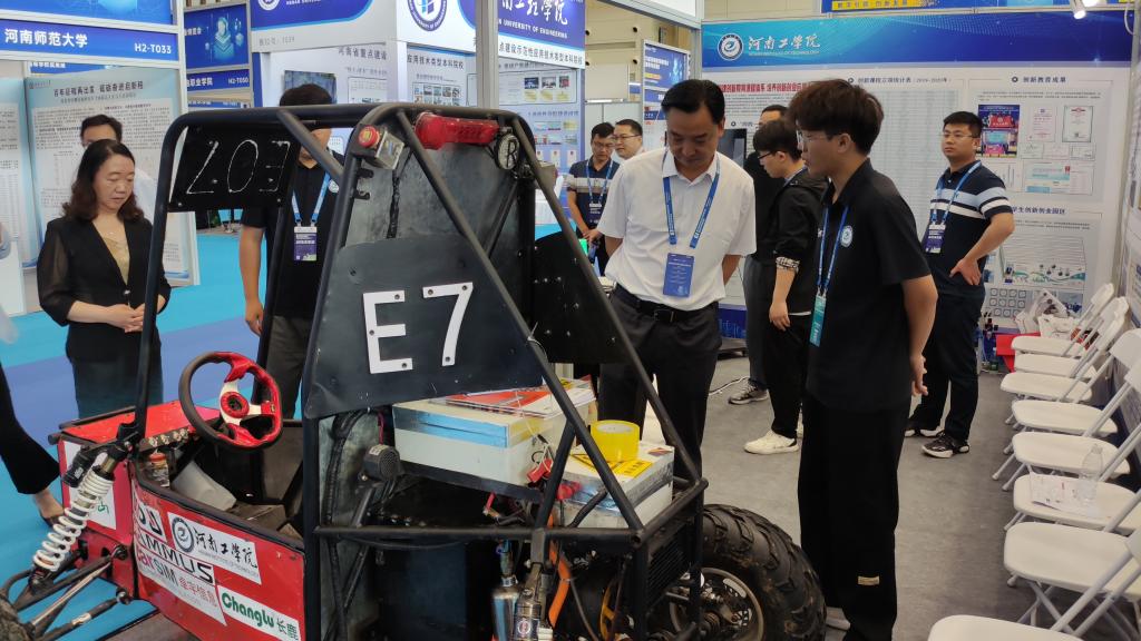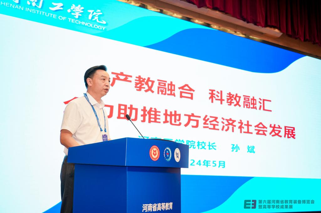 此次会议以“产教融合 科教融汇 协同创新”为主题,主要包括专家报告、校企交流、成果发布、发展研讨等内容,旨在深入贯彻落实党的二十大精神,加快高质量教育体系和教育强省建设,推动产教融合高质量发展,搭建学习交流合作共赢平台。会上,孙斌以《产教融合 科教融汇 全力助推地方经济社会发展》为题,围绕“构建与地方产业结构高度契合的学科专业体系”“建立与地方产业发展态势相吻合的现代产业学院”“搭建与地方经济发展相适应的科技创新体系”“引进与学校学科专业匹配的生产性企业”“形成服务地方经济发展的应用型人才培养模式”等5个方面,全面介绍了我校在深化产教融合、强化科教融汇、服务地方经济发展等方面取得的成果。他指出,河南工学院坚持应用型办学定位,主动对接国家和河南重大战略需求,以服务地方经济发展为己任,以提高人才培养质量和科技创新能力为导向,弘扬工学结合、校企合作的优良传统,深化产教融合,强化科教融汇,形成了鲜明的应用型人才培养特色和产学研协同创新品牌,学校办学实力和办学水平明显提升,通过成立联合办学董事会、建设现代产业学院、搭建科研服务平台、选派博士服务团等措施,在服务地方经济社会发展中的作用和地位日益凸显,形成了我校应用型人才培养的特色做法与典型经验,体现了我校作为应用型大学服务地方经济社会发展的使命担当。会后,孙校长一行到河南省教育装备成果展暨高等学校成果展我校展位慰问师生,对大家为参展工作精心准备和辛苦付出给予充分肯定,对展示作品效果和展览为校争光给予了高度评价。