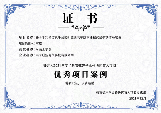 近日,教育部产学合作协同育人项目专家组对2021年度教育部产学合作协同育人项目优秀项目案例进行了评审,我校常成老师的《基于半实物仿真平台的新能源汽车技术课程实践教学体系建设》荣获“优秀项目案例”。