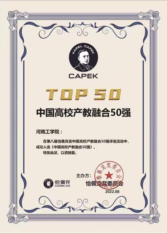 近日,第十二届中国国际机器人高峰论坛暨第八届恰佩克颁奖仪式在安徽芜湖举行。本届恰佩克奖评委会基于大量数据和事实的严格审核和分析,从113所国内入围高校中,评出了“中国高校产教融合50强”奖项,我校成功入选。