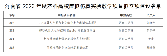 近日,河南省教育厅发布了“河南省第二批本科高校虚拟仿真实验教学项目”,我校“工业机器人产品包装自动化生产虚拟仿真实验项目”等4个项目获批省级虚拟仿真实验教学立项建设项目。