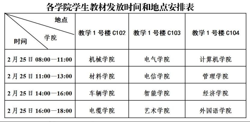 2023-2024学年第二学期教材发放时间为:2024年2月25日(周日)全天。