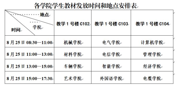 2024-2025学年第一学期教材发放时间为:2024年8月25日(周日)全天。